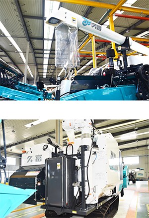 3、高效率作业1400L超大粮箱,205L大油箱,长3.8m卸粮搅龙配合旋转270°,高位液压式卸粮装置,省工高效。